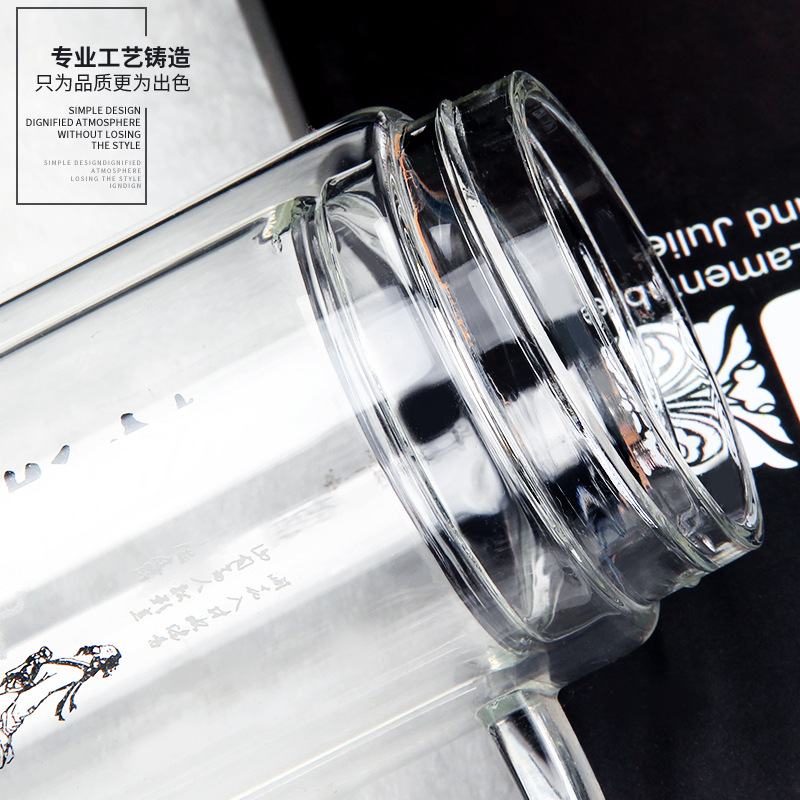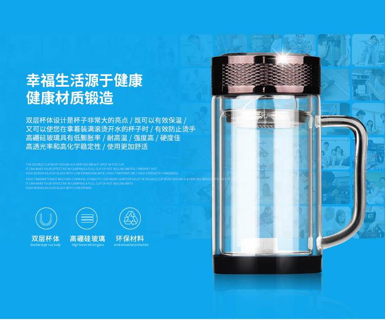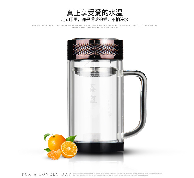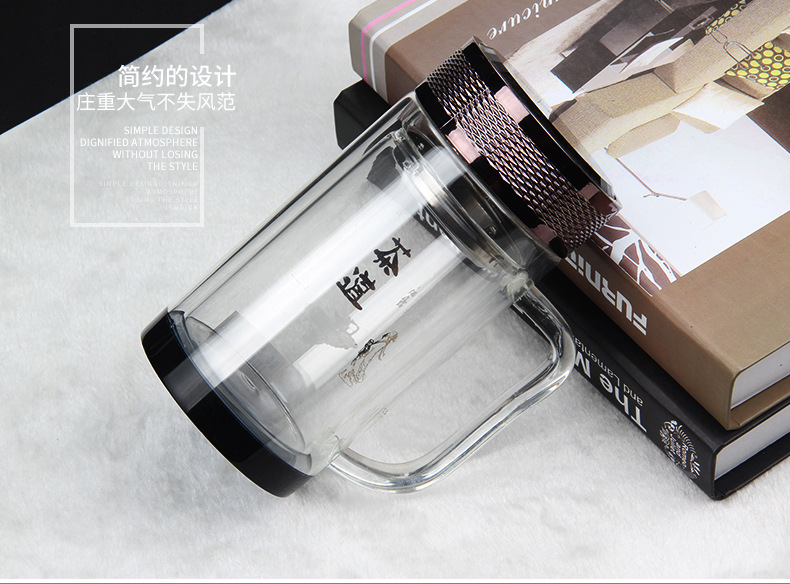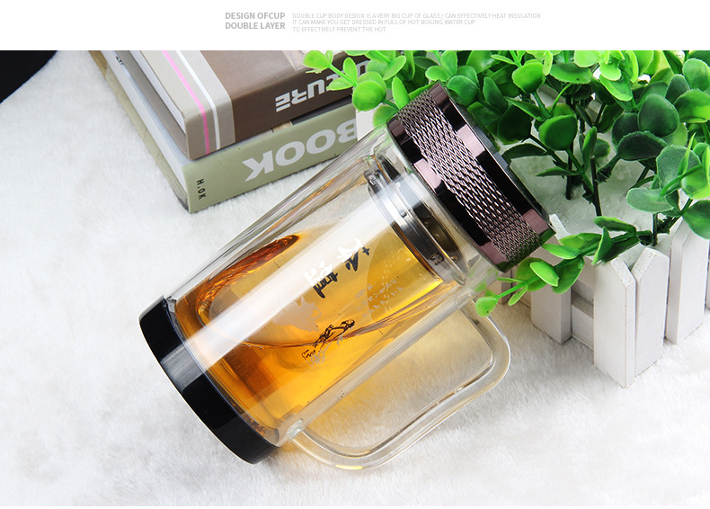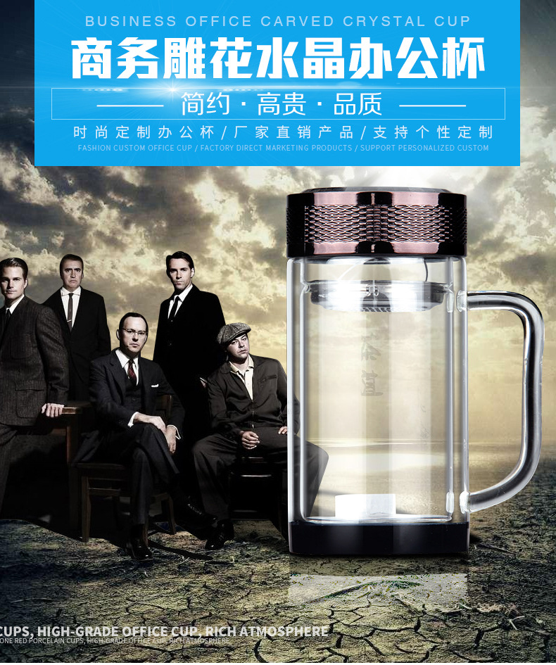 廣東蕾洛商用廚房設備定制高檔雙層水晶玻璃杯商務帶手柄水杯