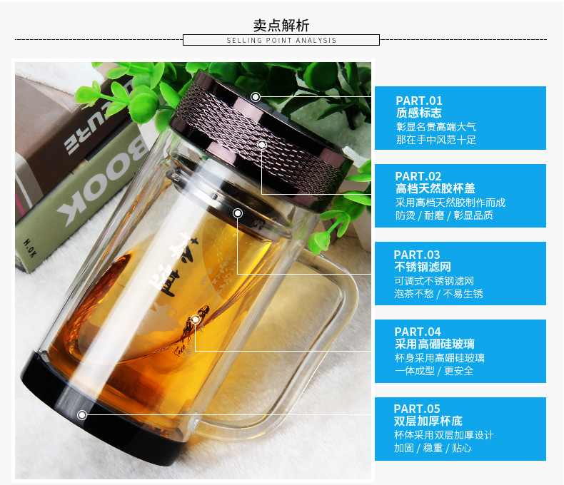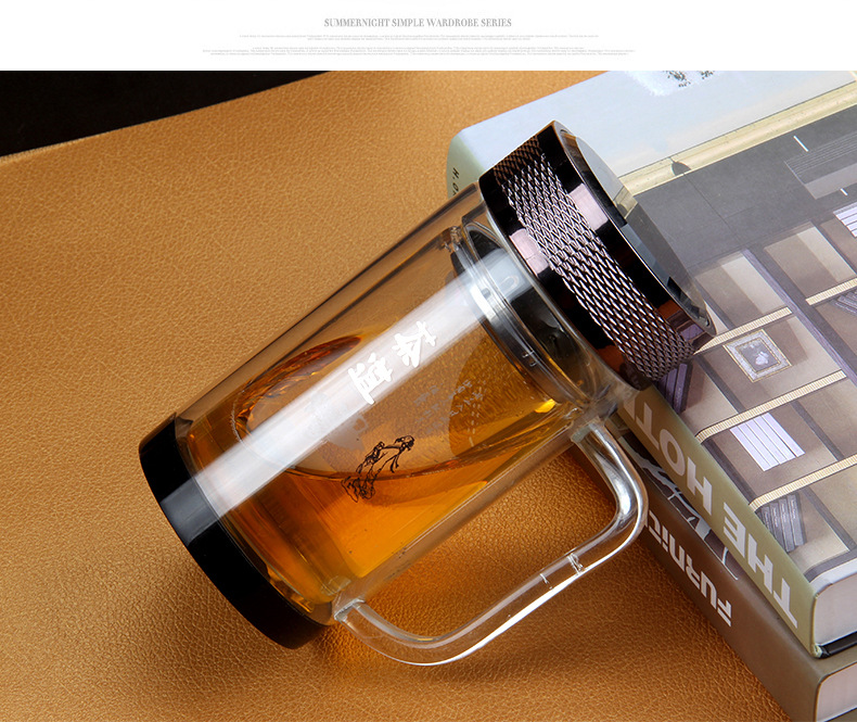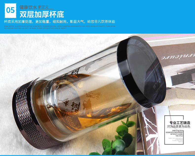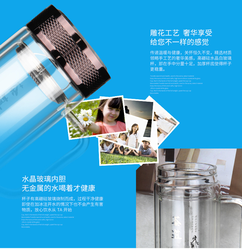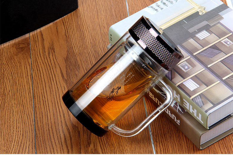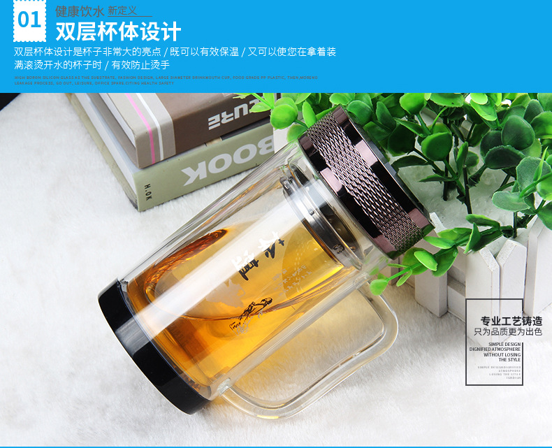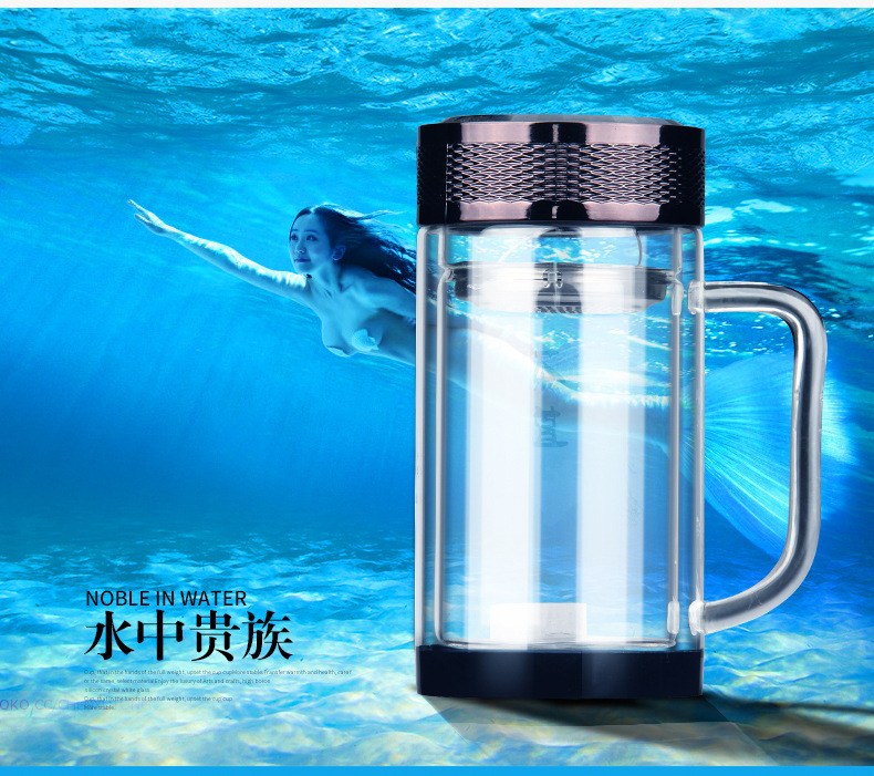 廣東蕾洛商用廚房設備定制高檔雙層水晶玻璃杯商務帶手柄水杯