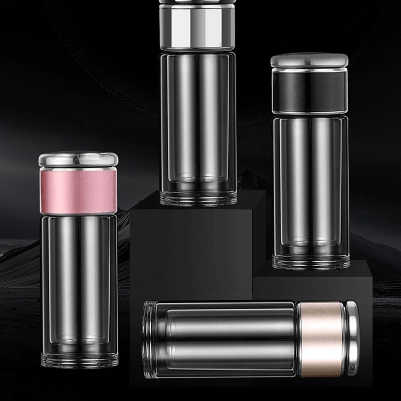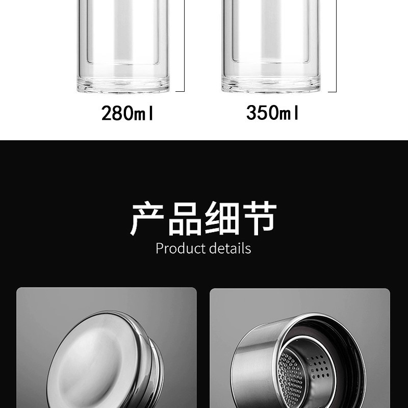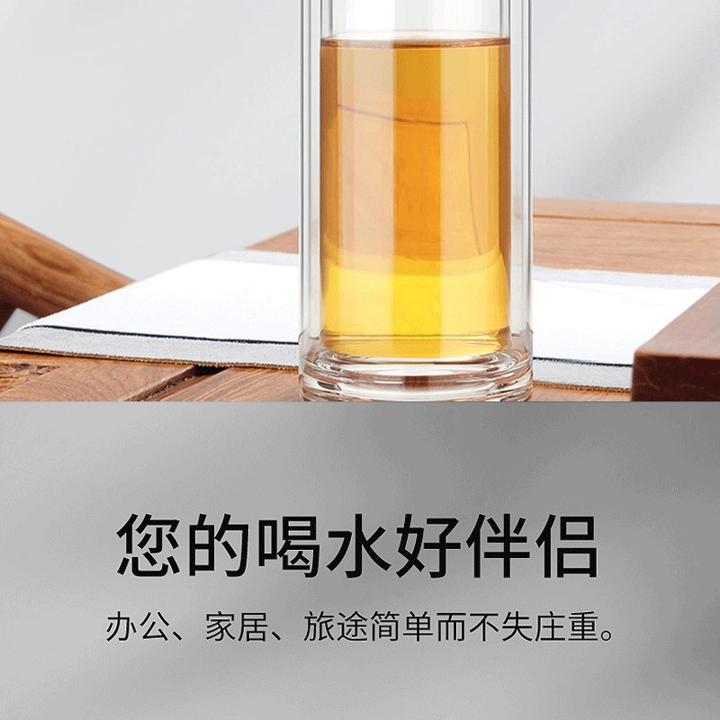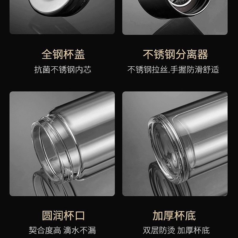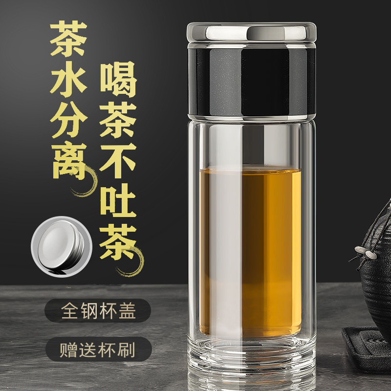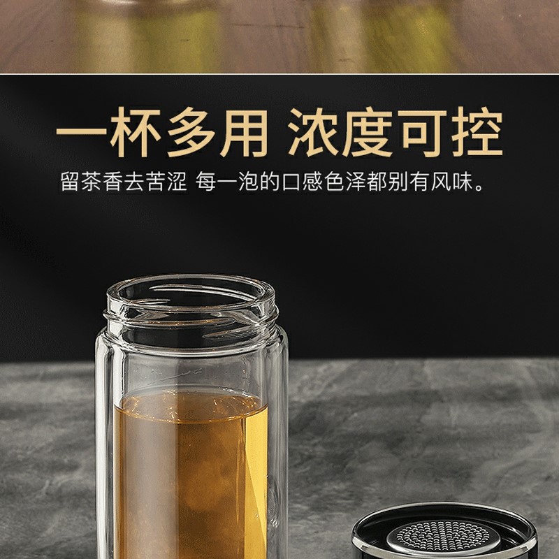 網紅茶水分離杯雙層玻璃杯家用透明玻璃水杯商務禮品茶杯隔熱
