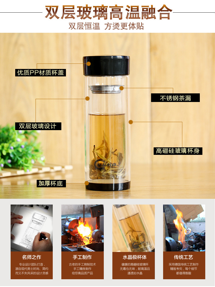 廠家定制玻璃杯 耐高溫雙層加厚水晶杯 商務(wù)茶杯禮品廣告杯印logo