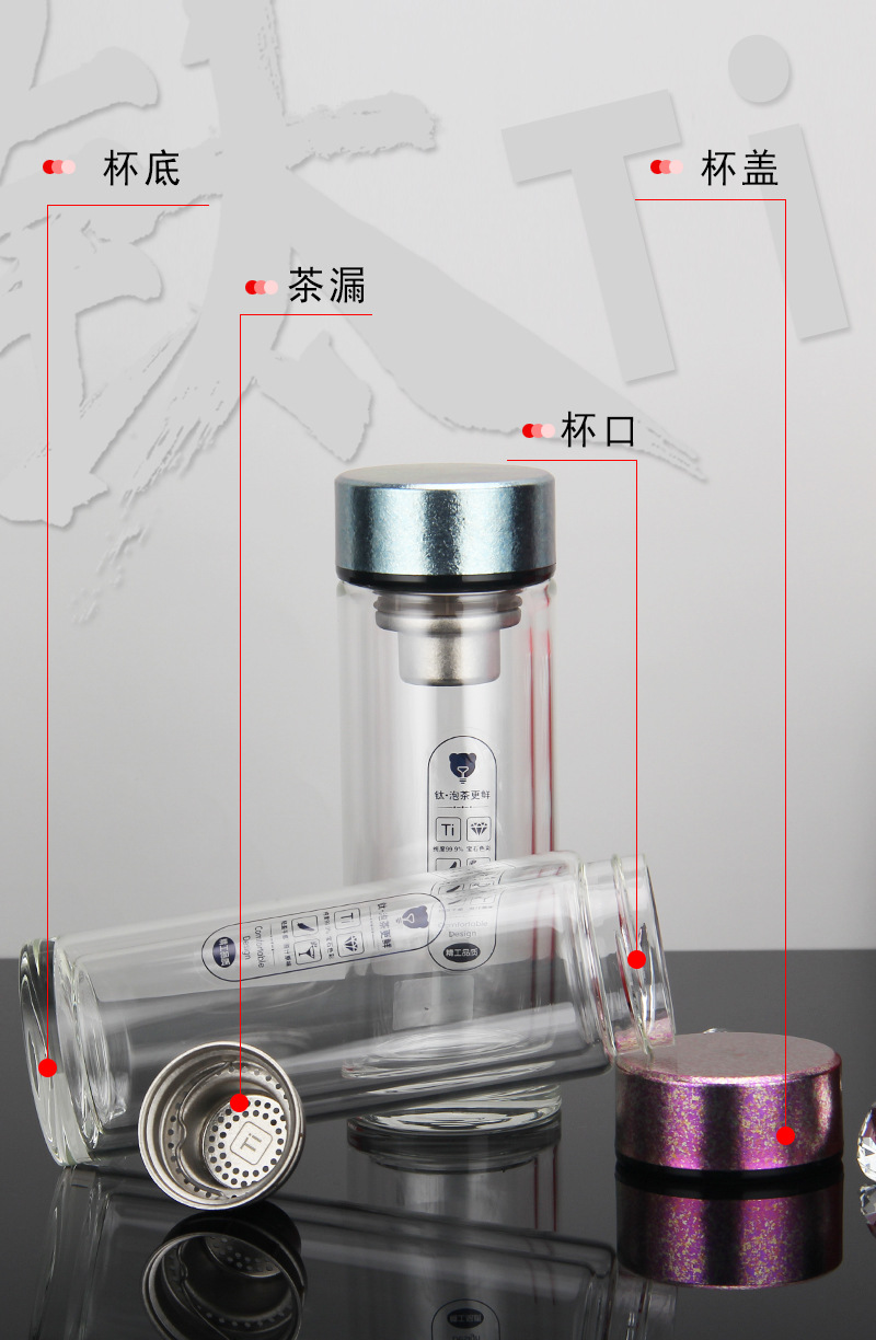 雙層玻璃杯純鈦蓋子