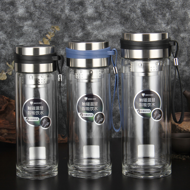 高硼硅雙層溫度顯示提繩玻璃同學會議團建獎品促銷禮品杯