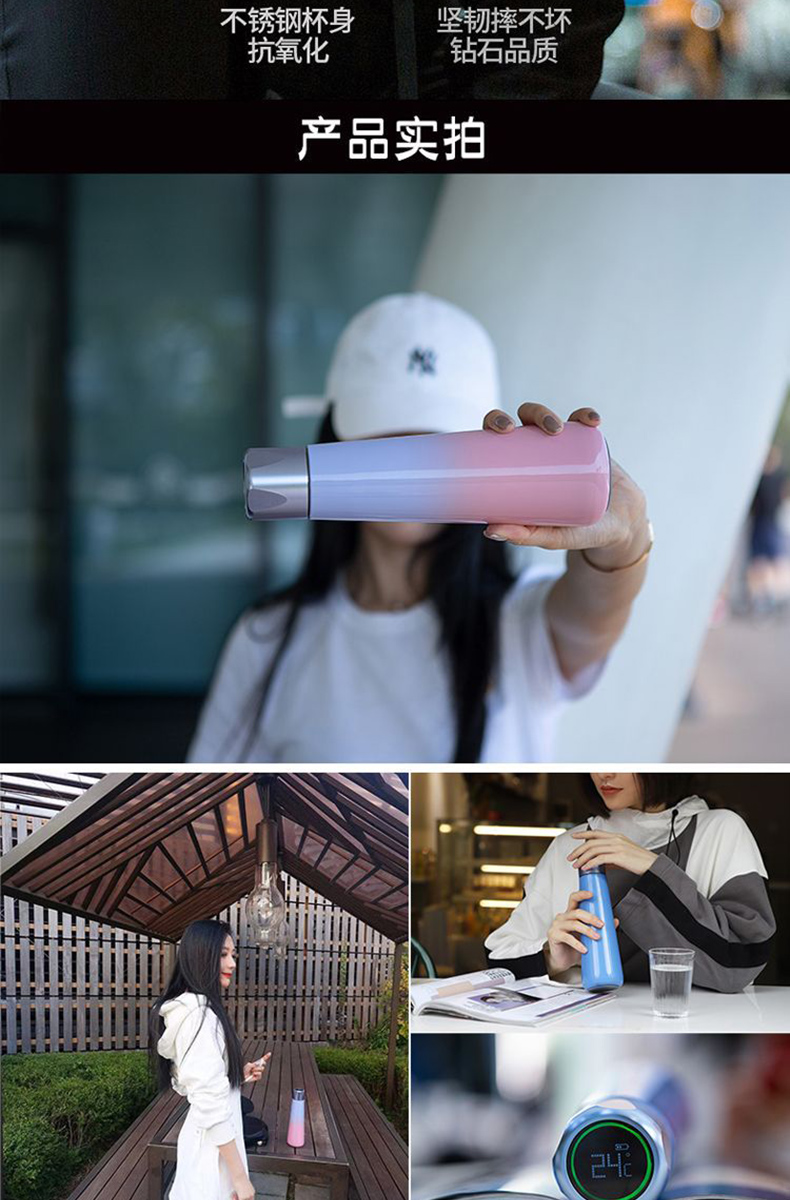 新款可充電觸屏顯溫定時提醒智能杯定制刻字