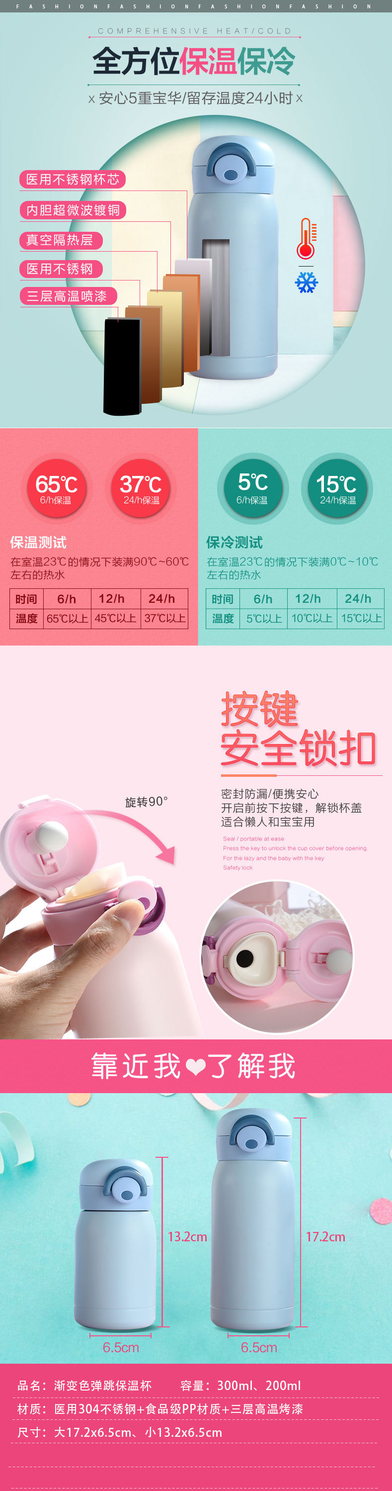 可愛彈跳不銹鋼雙層保溫杯304新款學生彈跳杯兒童隨手杯