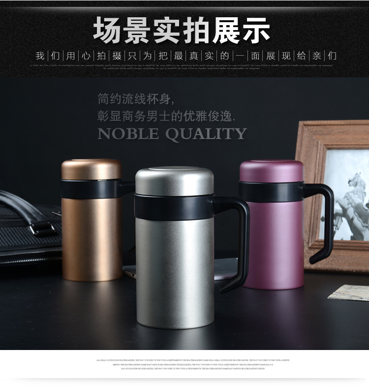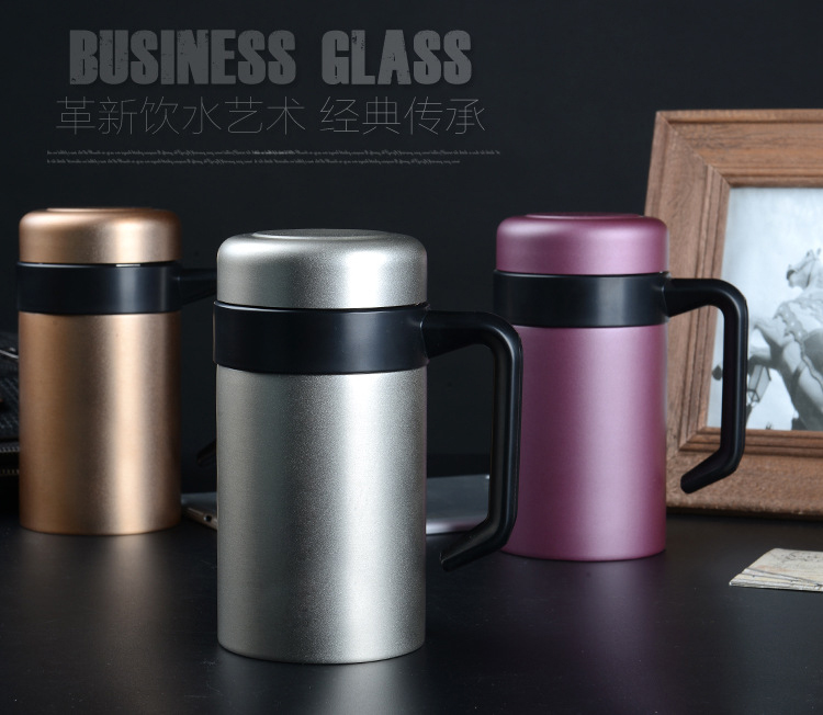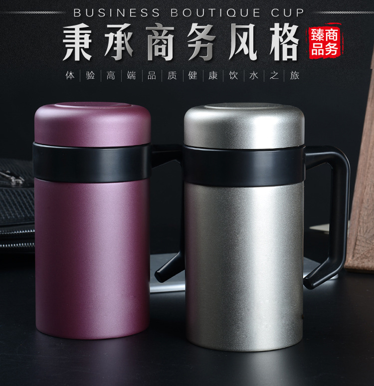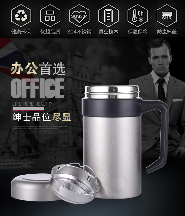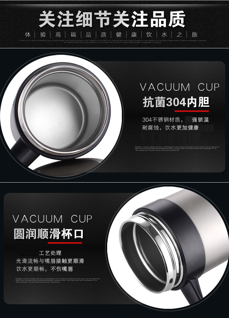 批發304雙層不銹鋼真空保溫杯高檔商務手柄辦公杯禮品水杯定制