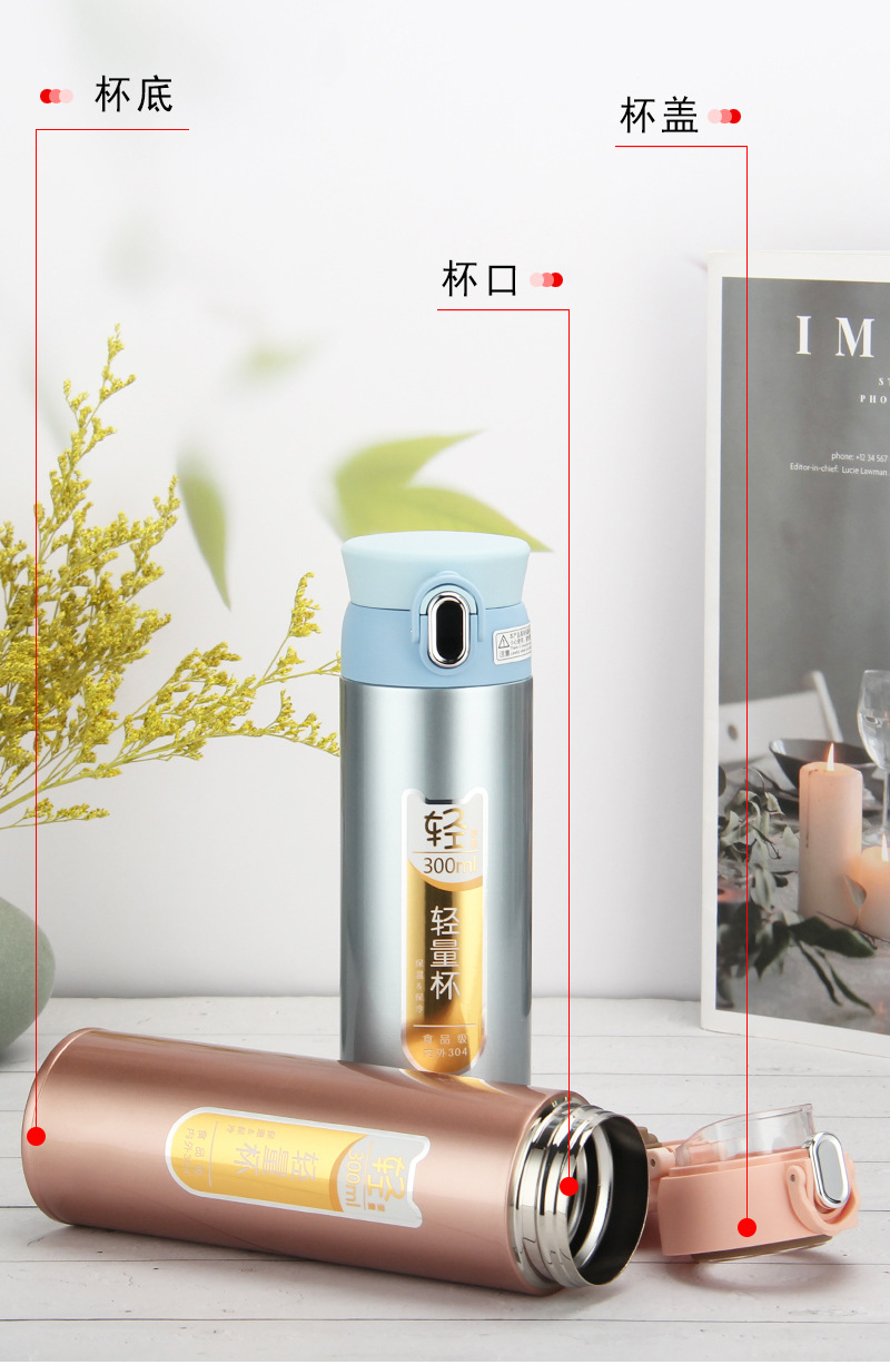 真空休閑杯不銹鋼保溫杯 兒童女士彈跳杯 直飲禮品杯