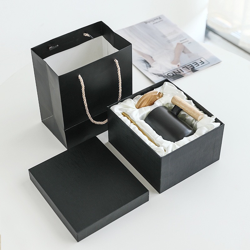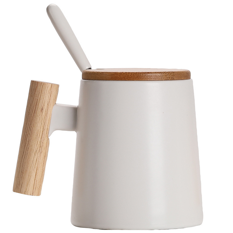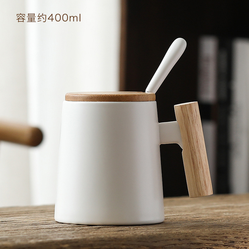 木手柄木把杯 陶瓷馬克杯禮盒套裝創意情侶水杯帶蓋 簡約咖啡杯